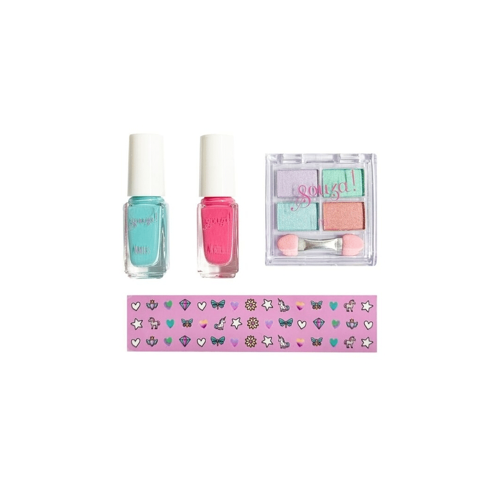 Met deze Souza Make-up set ogen en nageltjes beleef je pure fantasie. Jij creëert kleurrijke looks met zachte tinten en speelse nagelversiering. Perfect voor kleine beautyfans die houden van eenhoorns, glitter en creativiteit.