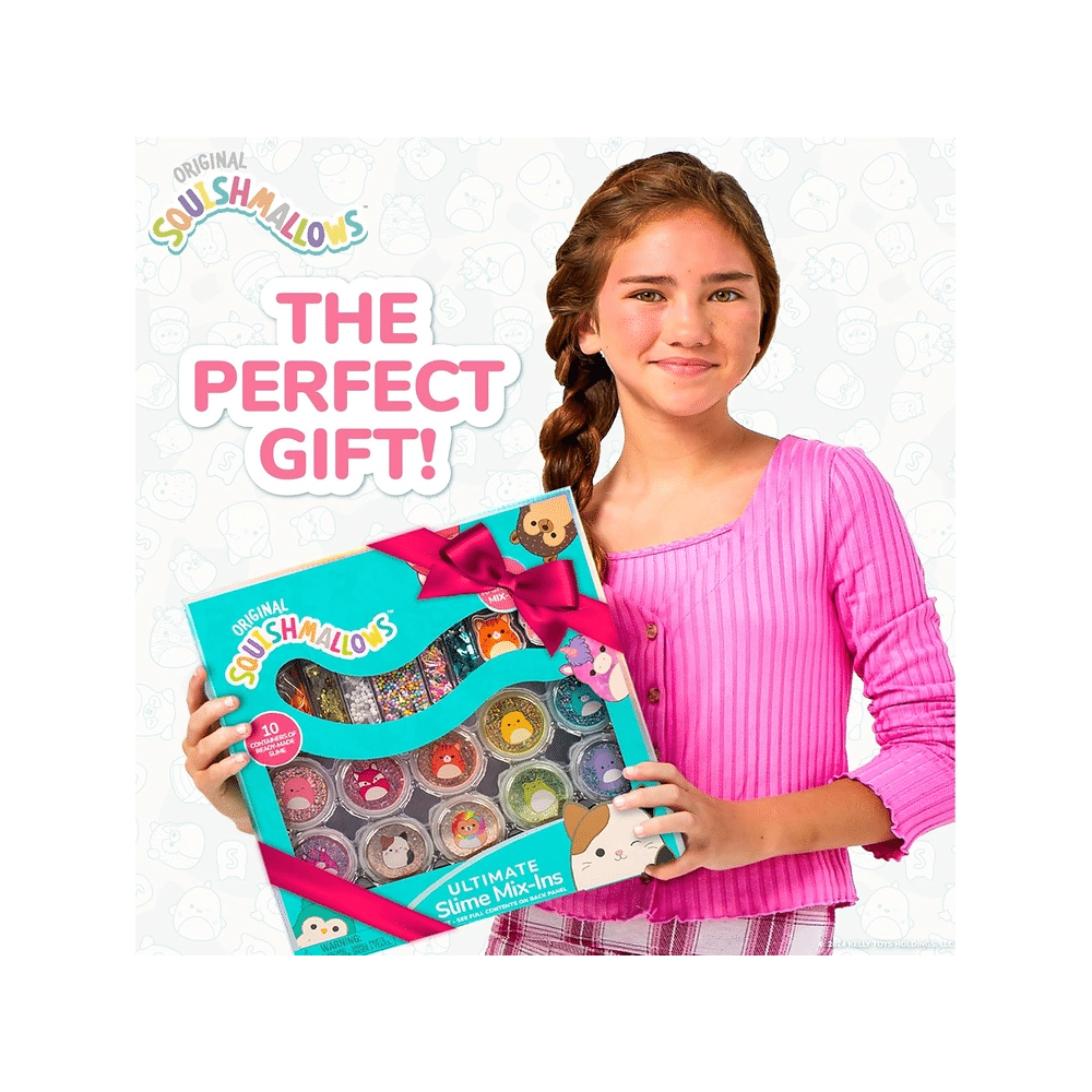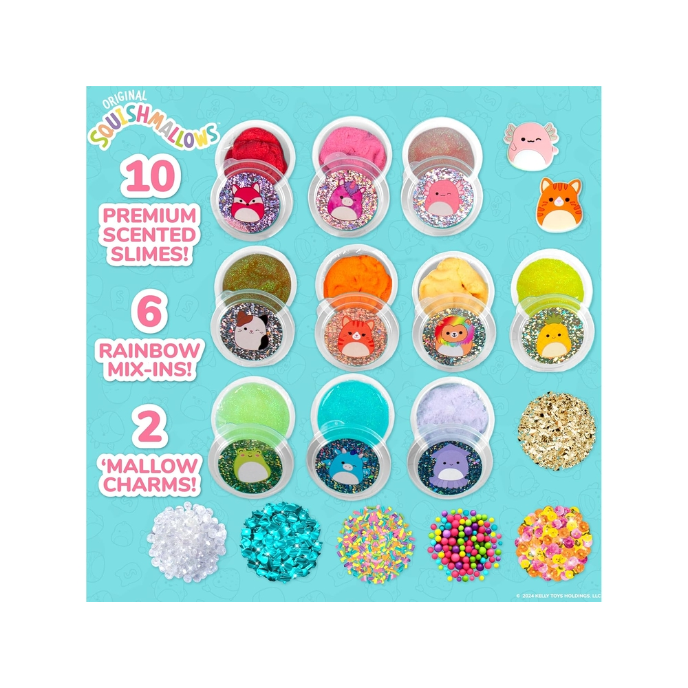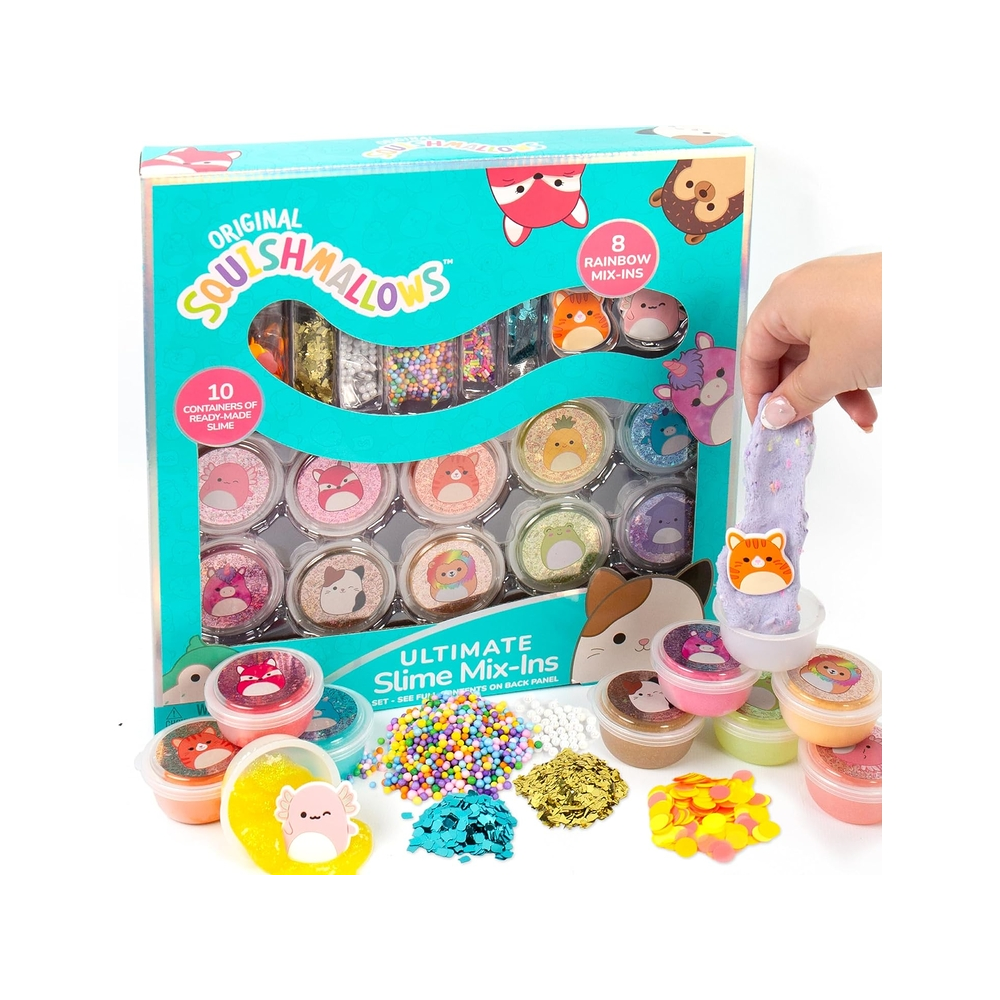 Creëer je eigen magische slijmwereld met de Squishmallow Ultimate Slime Mix! Deze complete set bevat alles wat kinderen nodig hebben om kleurrijk, glanzend en squishy slijm te maken. Voeg verschillende kleuren, glitters en texturen toe en ontdek eindeloze combinaties voor urenlang creatief plezier. Perfect voor jonge slijmliefhebbers die hun fantasie willen uiten en hun eigen unieke slijmcreaties willen maken.