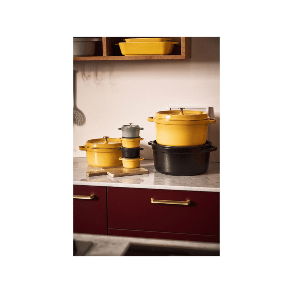 Bereid heerlijke gerechten in deze Staub La Cocotte braad- en stoofpot.Ideaal voor stoofschotels, soepen en feestmaaltijden, in een vrolijke citroenkleur.