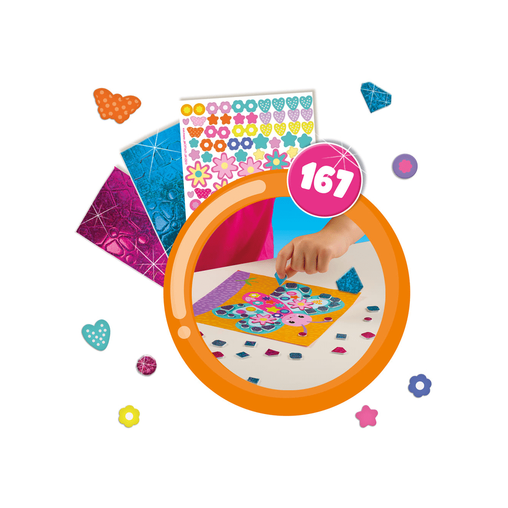 Deze set biedt alles voor urenlang knutselplezier zonder rommel. Dankzij de stickers zonder lijm kan je kind meteen aan de slag en vrij experimenteren met vormen en kleuren.