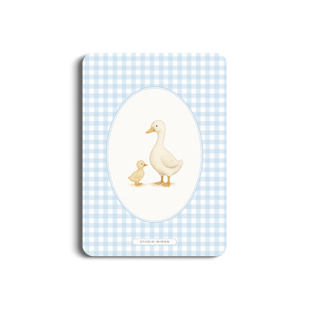- Gingham blauw design met mama-eend en babyeendje