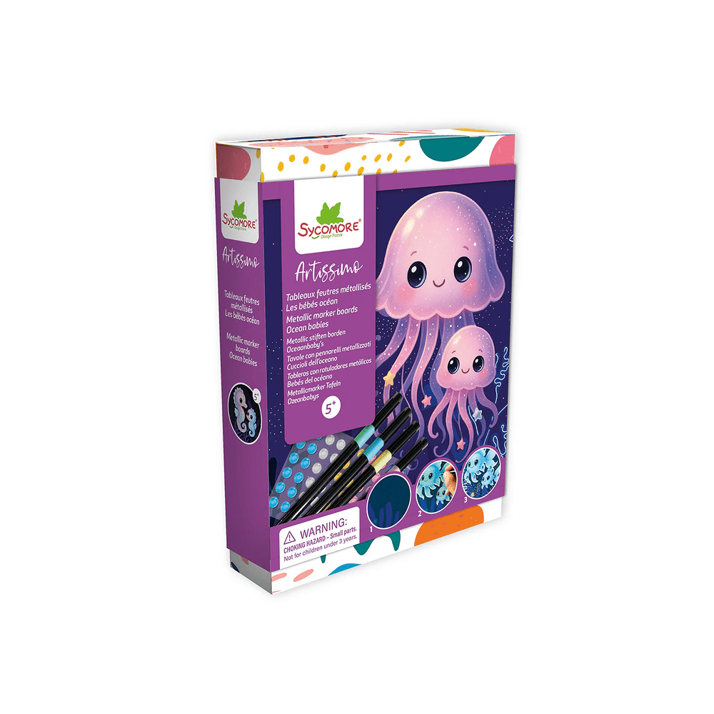 Sycomore Artissimo Metallic Stiften Vrienden Van De Oceaan brengen glans en kleur samen in jouw tekeningen. Jij maakt kunstwerken die opvallen dankzij metallic effecten en speelse oceaandieren.