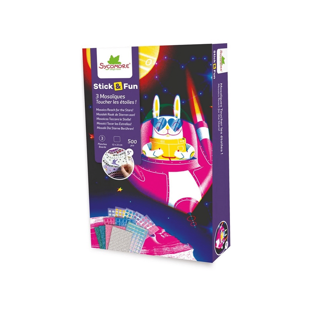 Met de Sycomore Stick & Fun Mini Mozaïek Ruimte maak jij de mooiste ruimtecreaties. Ideaal voor kleine kunstenaars die graag plakken, ontdekken en hun fantasie de vrije loop laten.
