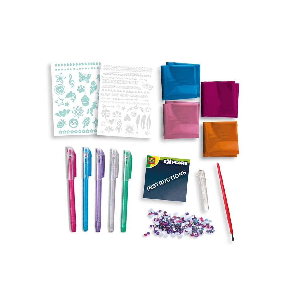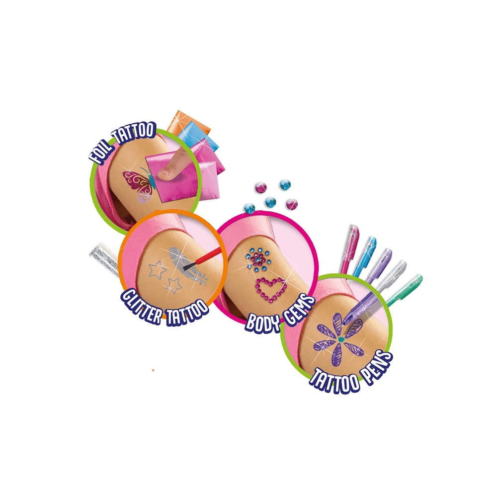 Met deze creatieve tattoo set ontwerp je zelf schitterende tijdelijke tattoos vol kleur en glans. Jij kiest de stijl en maakt unieke designs die perfect bij jou passen.