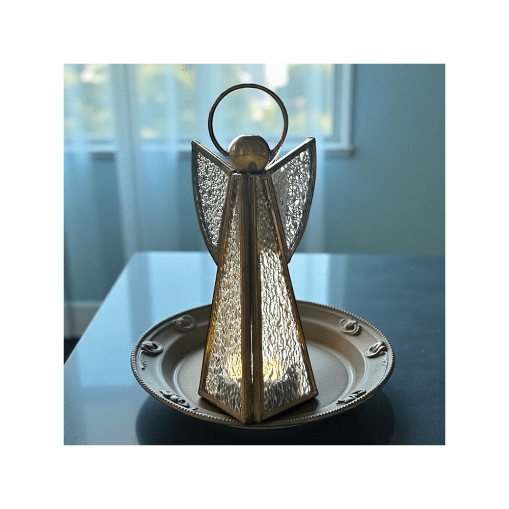 - Product: Theelichthouder Engel S Helder/messing Glas/metaal 8x8x18cm