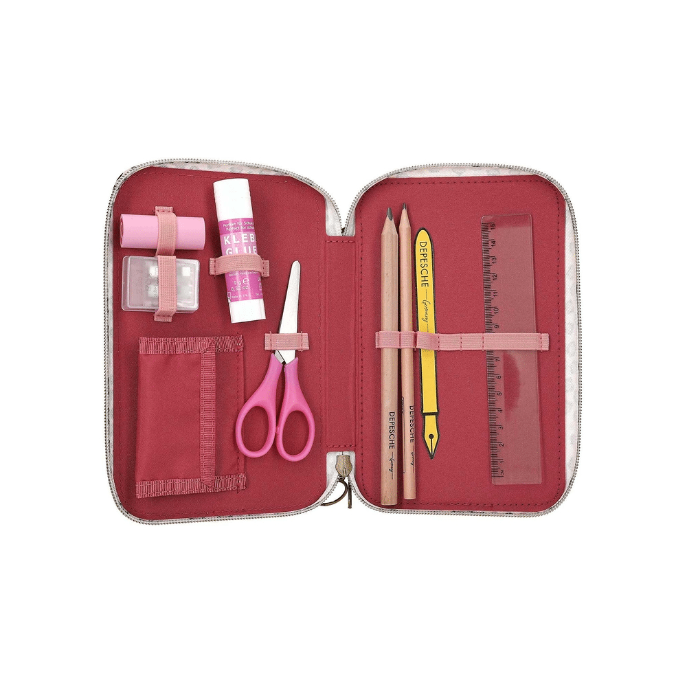 Houd je schoolspullen netjes met het TopModel 3-vaks Etui Gevuld Roze!