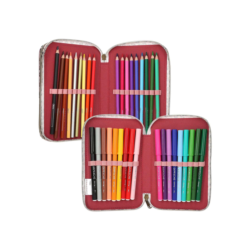 Het TopModel 3-vaks Etui Gevuld Roze is niet alleen praktisch, maar ook super stijlvol. Met drie aparte vakken en leuke TopModel designs heb je al je pennen, stiften en accessoires overzichtelijk bij de hand. Perfect voor school en creatieve momenten!Waarom is dit etui zo handig?