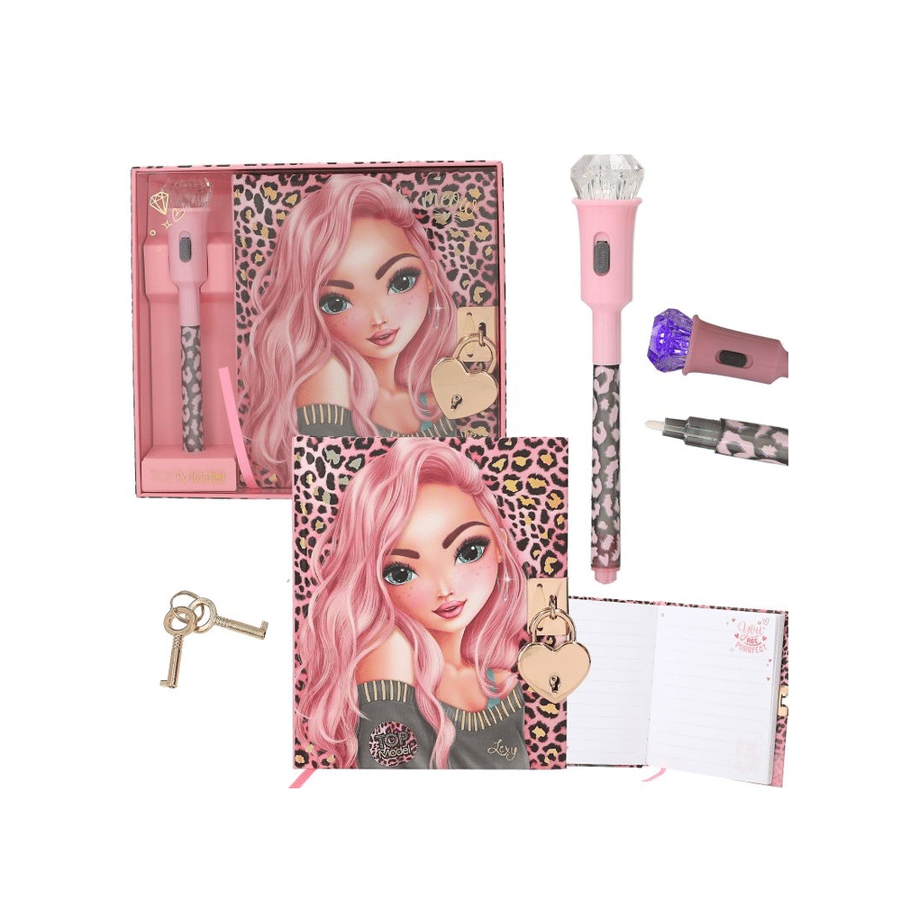 Laat jouw geheimen veilig schitteren met het Topmodel Dagboek met Geheime Pen! Dit magisch dagboek heeft een slot dat je enkel kan openen met jouw persoonlijke geheimenpen – je ziet alleen wat je geschreven hebt met het speciale UV-licht! De kleurrijke pagina’s zitten boordevol stijlvolle illustraties die jouw gedachten nog mooier maken. Perfect om al je avonturen, dromen en geheimpjes in te bewaren. De geheime pen zit netjes opgeborgen in het boek, dus jij weet zeker dat je privacy beschermd blijft. Wie houdt er nu niet van een beetje mysterie? Laat je fantasie de vrije loop en maak er jouw eigen geheime wereld van!