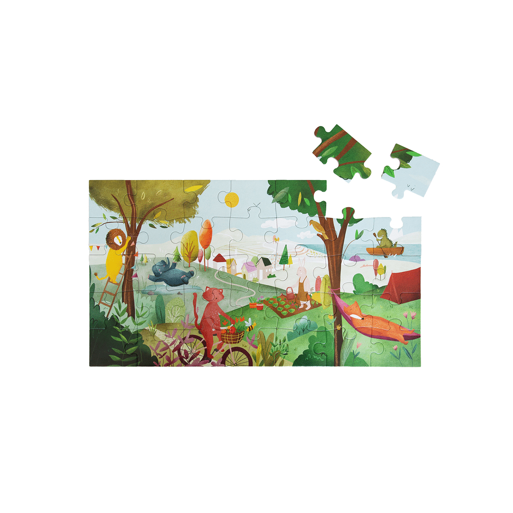 Ontdek kleuren en vormen met deze vrolijke 35-delige puzzel. Elk stuk past perfect en stimuleert logica, hand-oogcoördinatie en fijne motoriek. Gemaakt van stevig hout met veilige verf op waterbasis.