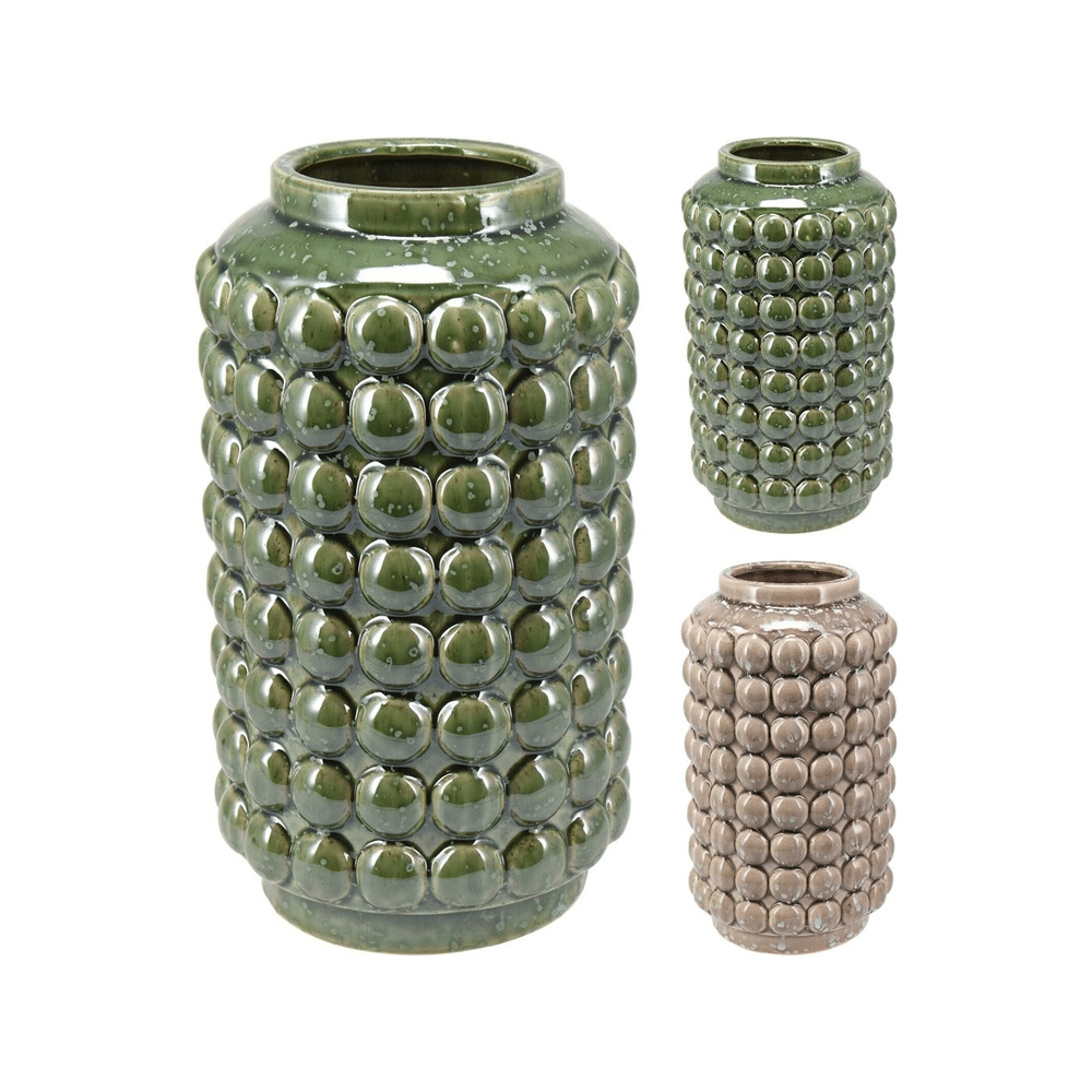 Voor wie houdt van opvallende details met een moderne twist is deze grote bubbelvaas een absolute topper. De unieke structuur met bolletjes rondom geeft een speels effect zonder in te boeten aan elegantie. Dankzij het grotere formaat is ze ideaal voor grotere boeketten of als statement piece op een kast of bijzettafel. Verkrijgbaar in verschillende kleuren voor een persoonlijke touch.