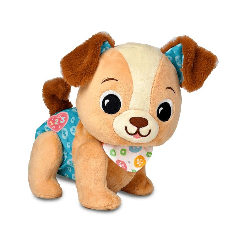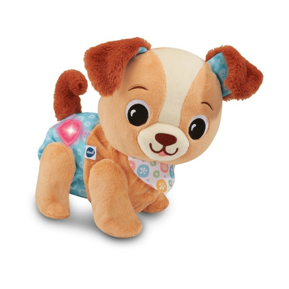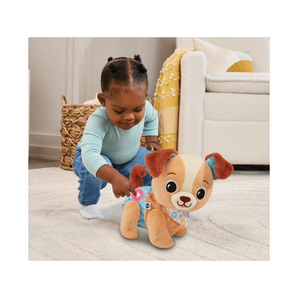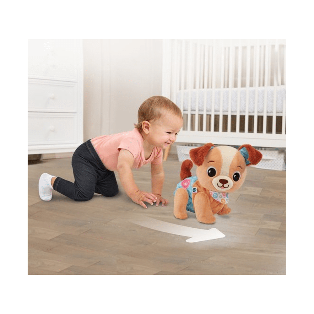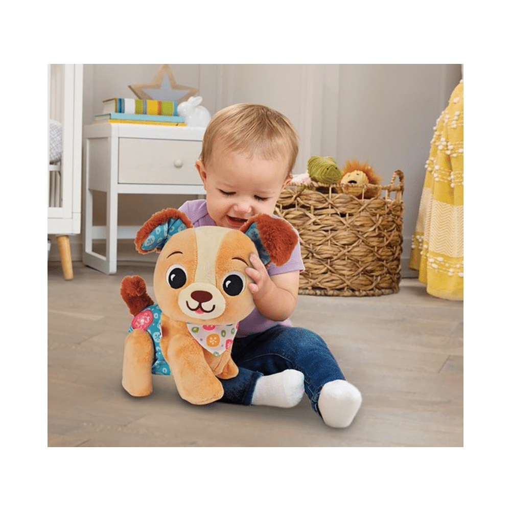 De puppy reageert op jouw bewegingen en moedigt je telkens opnieuw aan met gezellige melodietjes, vrolijke zinnetjes en speelse effecten. Dankzij het interactieve karakter ontdek jij spelenderwijs nieuwe dingen, terwijl je jouw evenwicht, motoriek en zelfvertrouwen ontwikkelt. De zachte uitstraling en het grappige gedrag van de puppy maken hem meteen jouw beste vriend, klaar om overal mee naartoe te gaan.