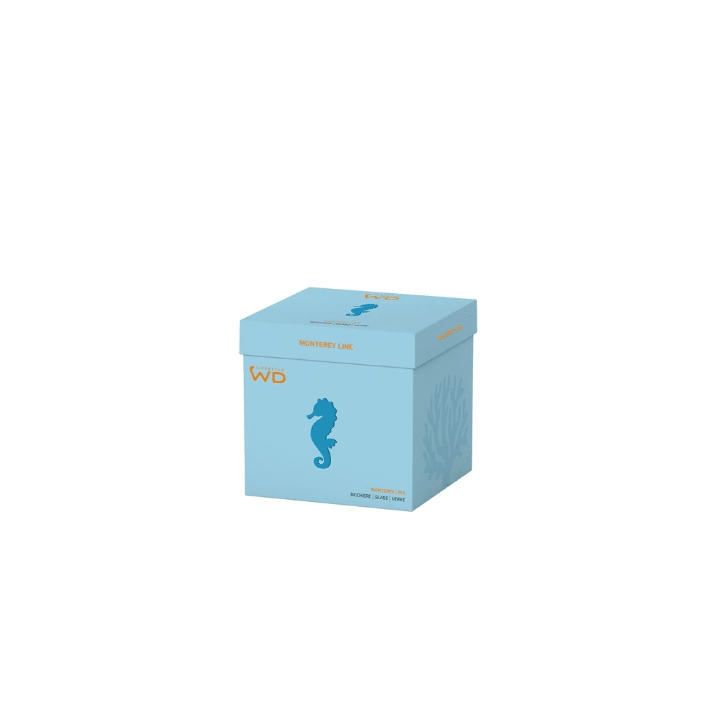 Het WD Lifestyle Monterey Line glas van 25cl met een speels zeepaarddecor maakt elk drankje leuk en kleurrijk. Ideaal voor water, sap of limonade, en een vrolijke blikvanger op tafel.