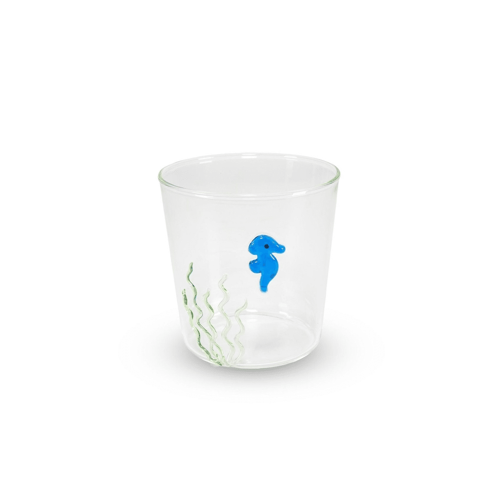 Met een charmant zeepaarddesign combineert dit glas stijl met praktisch gebruik. Stevig en speels, perfect voor jong en oud die hun tafel willen opvrolijken.