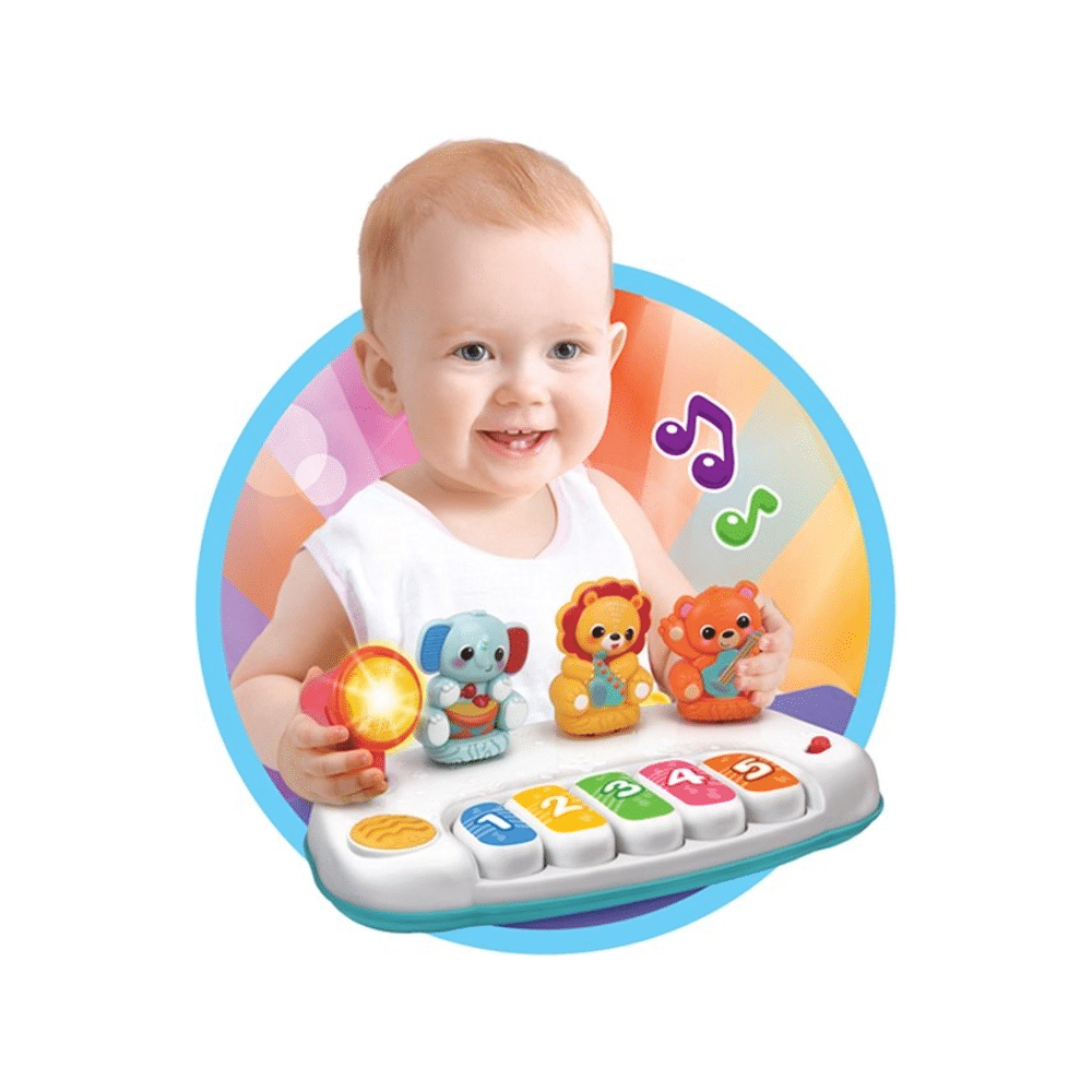 Laat je kindje op de toetsen drukken, luister naar de geluiden en ontdek verschillende melodietjes.- Bevordert hand-oogcoördinatie