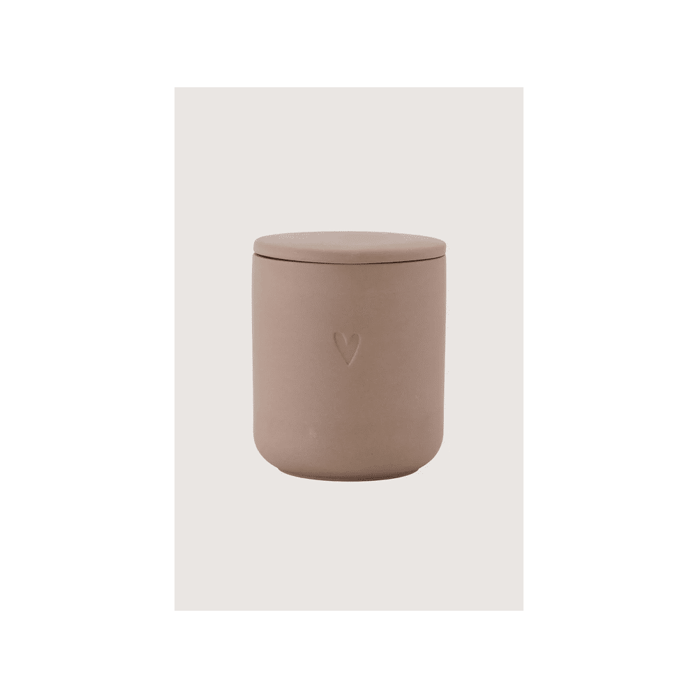 Deze geurkaars combineert verzorgd keramiek met een hartjesdesign. De bruine kleur geeft een natuurlijke en rustgevende uitstraling aan elke kamer.