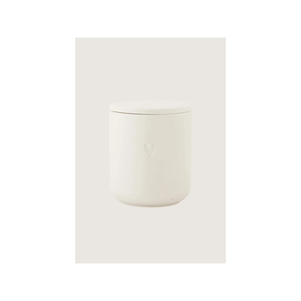Deze geurkaars combineert hoogwaardig keramiek met een hartjesdesign. De off white kleur voegt een rustige en tijdloze uitstraling toe aan elke kamer.