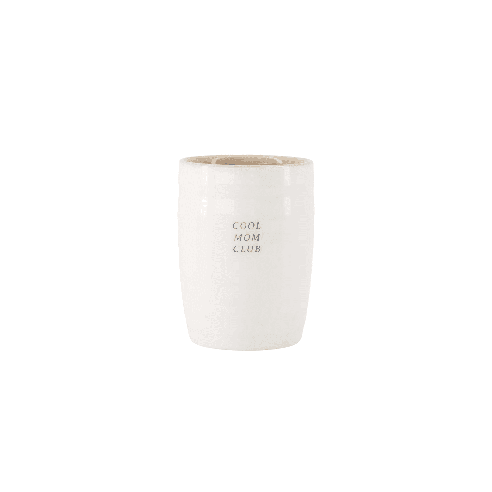 • Koffiemok in wit/oker met tekst “Cool Mom Club”
