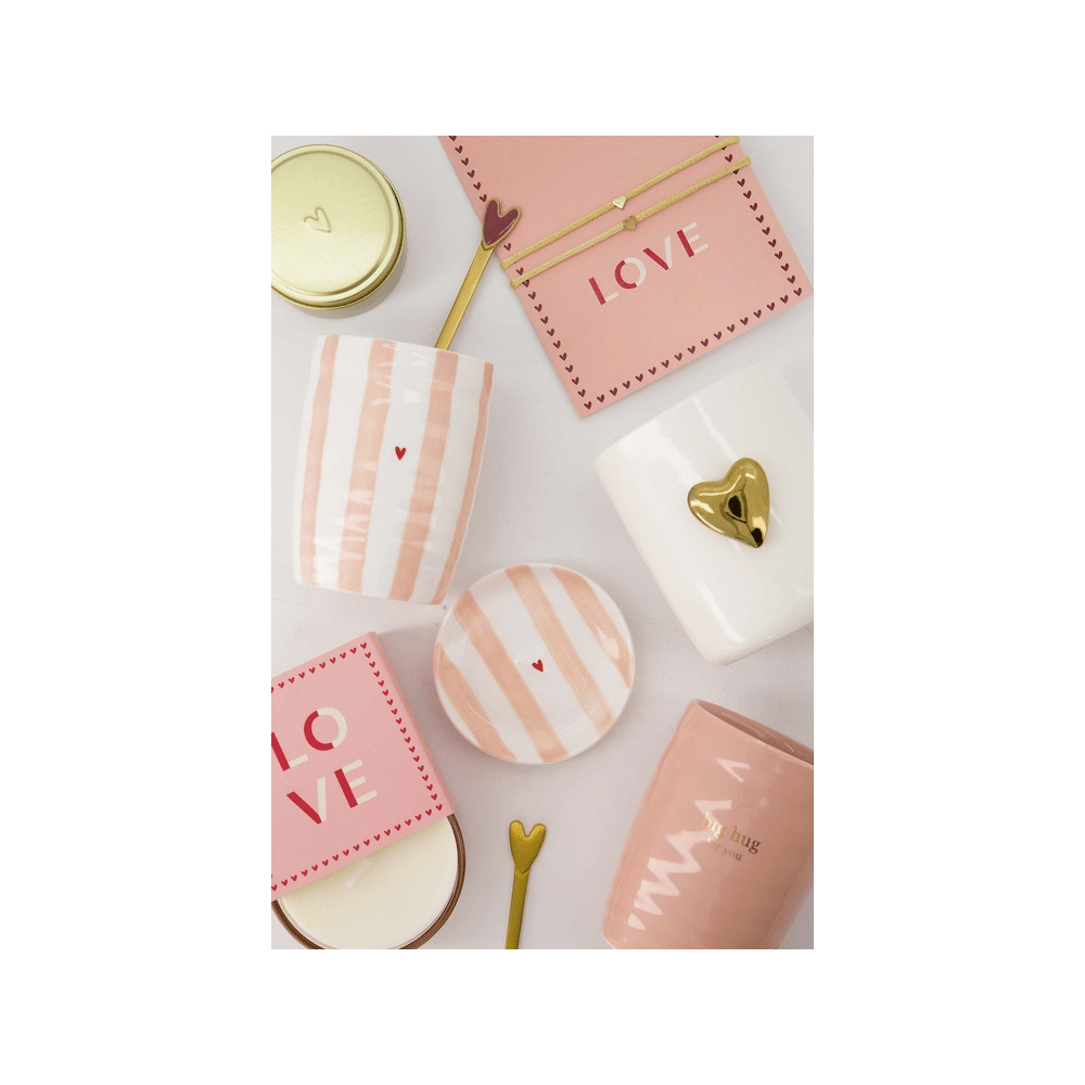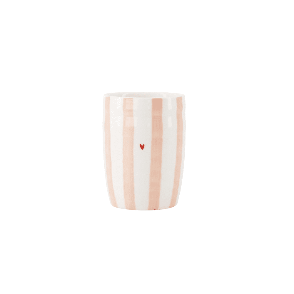 Start je dag met een vrolijk en liefdevol accent dankzij deze koffiemok in wit met roze en rode strepen en hartje. Perfect voor koffie, thee of warme chocolademelk, en ideaal om een speels en stijlvol tintje toe te voegen aan je tafel. Het stevige materiaal ligt prettig in je hand en het tijdloze design maakt elk genietmoment net dat beetje extra bijzonder. Of je nu jezelf wilt verwennen of iemand wilt verrassen, met deze mok wordt elk drankje extra gezellig en liefdevol.
