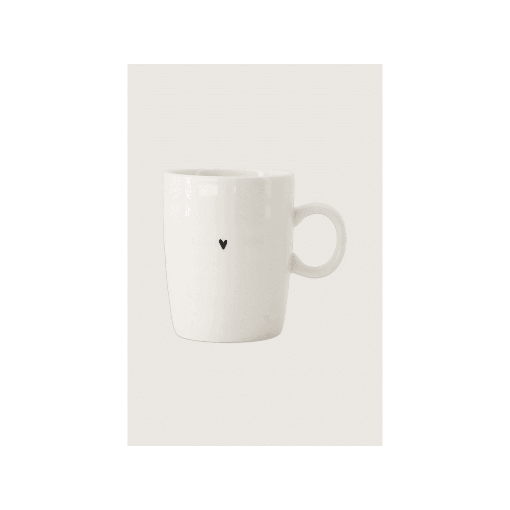 Deze theemok combineert hoogwaardig keramiek met een hartjesdesign. De combinatie van wit en zwart geeft een moderne en stijlvolle uitstraling.