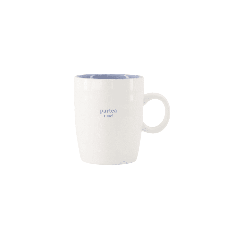 • Theemok in wit met lichtblauw accent en tekst “Partea Time”