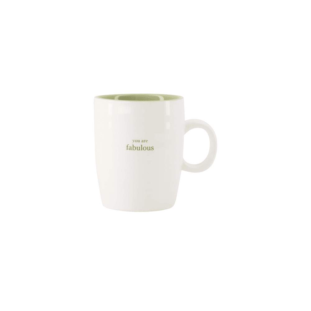 • Theemok in wit met lichtgroen accent en tekst “You Are Fabulous”
